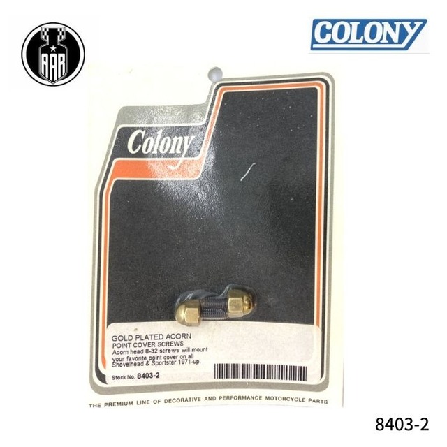 8403-2 Colony コロニー ゴールドメッキ エーコン 8-32 ポイント カバー スクリュー ハーレーダビッドソン 1971年以降 ショベルヘッド スポーツスター