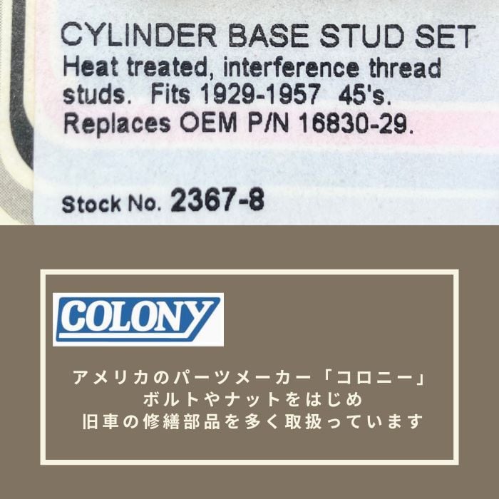 2367-8 Colony コロニー シリンダー ベース スタッド セット ハーレーダビッドソン 1929-57年 45 モデル