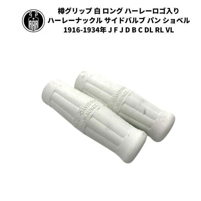 樽グリップ 白 ロング ハーレーロゴ入り インナースロットル 補強入り 左右 内径 1-1/8 インチ ハーレーダビッドソン Harley-Davidson ナックル サイドバルブ パン ショベル