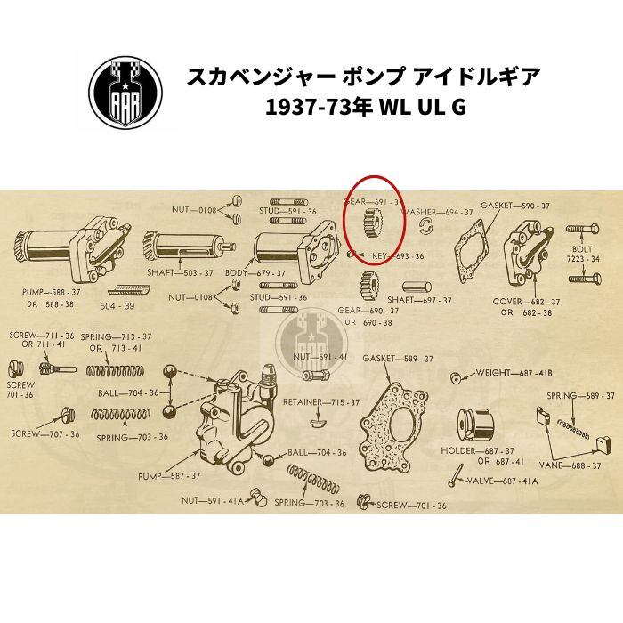 スカベンジャー ポンプ アイドルギア ハーレーダビッドソン 1937-73年 WL UL G