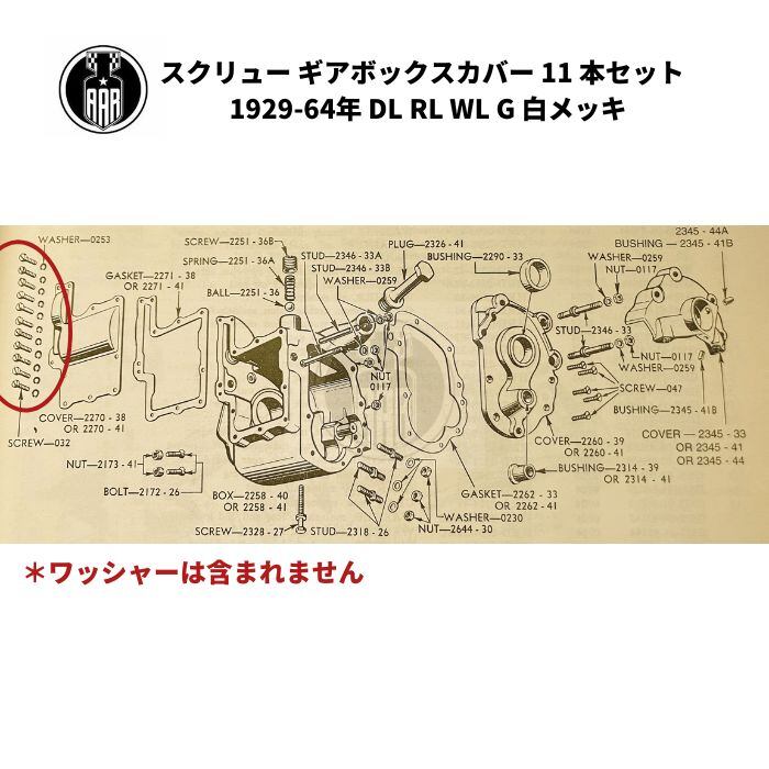 スクリュー ギアボックスカバー 11 本セット ハーレーダビッドソン 1929-64年 DL RL WL G 白メッキ