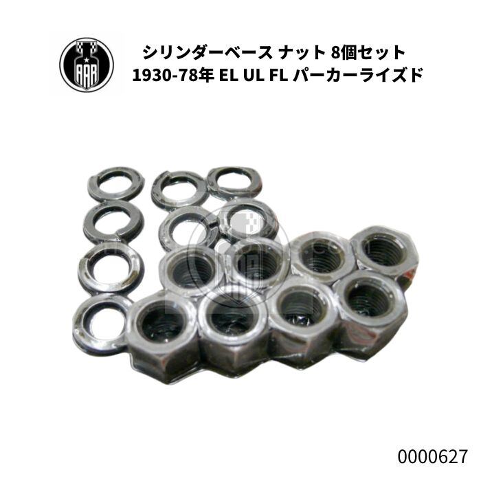 シリンダーベース ナット 8個セット 1930-78年 EL/UL/FL パーカーライズド