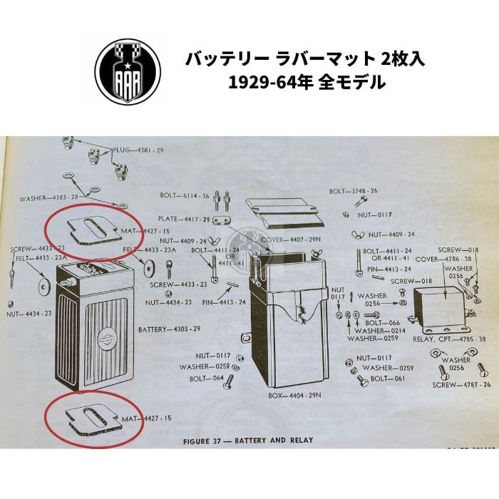 バッテリー ラバーマット 2枚入 ハーレーダビッドソン 1929-64年 全モデル