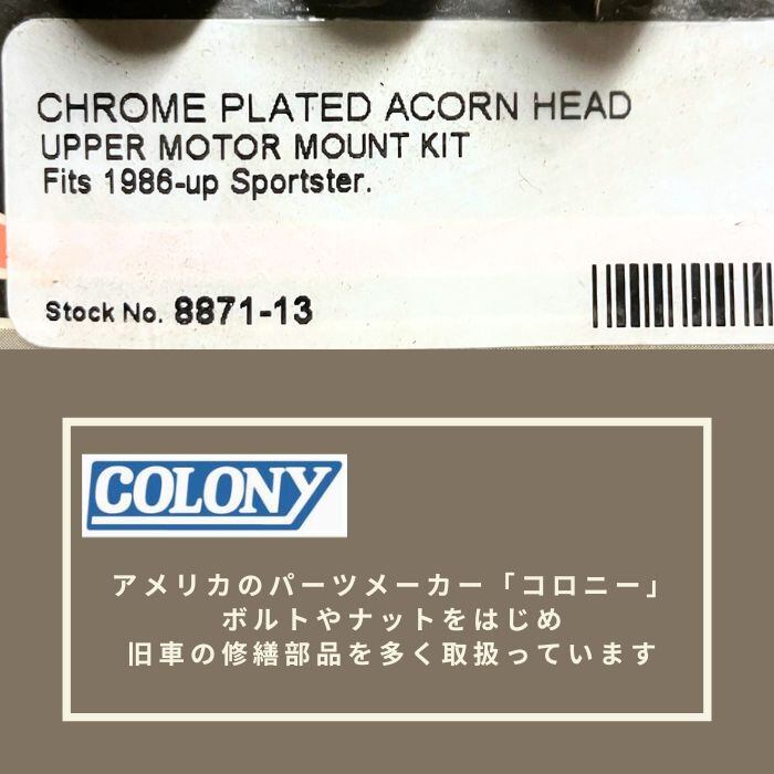 8871-13 Colony コロニー クロームメッキ エーコンヘッド アッパー モーター マウントキット ハーレーダビッドソン 1986年以降 スポーツスター