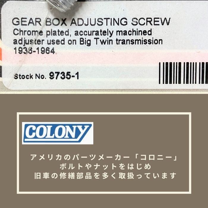 9735-1 Colony コロニー ギア ボックス アジャスター スクリュー クローム ハーレーダビッドソン 1936-64年 ビッグツイン トランスミッション