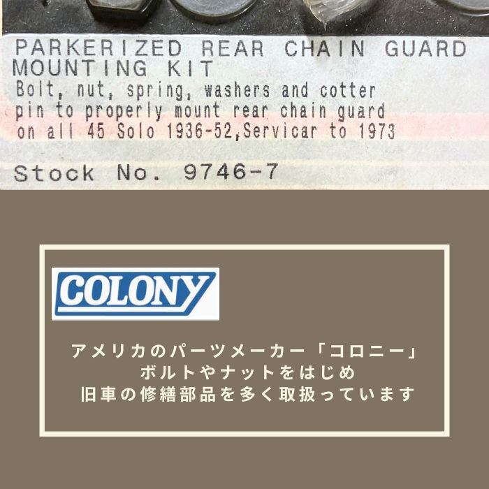 9746-7 Colony コロニー パーカーライズド リアチェーン ガード マウント 取り付けキット ハーレーダビッドソン Harley-Davidson 1936-1952年 750cc -1973年 サービカー