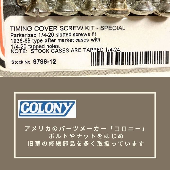 9796-12 Colony コロニー タイミングカバー スクリューキット パーカーライズド ハーレーダビッドソン 1/4-20 1936-69年