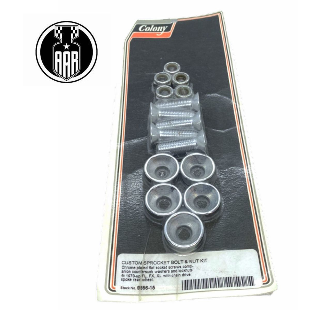 9856-15 Colony コロニー カスタム スプロケット ボルト ナット キット クロームメッキ ハーレーダビッドソン 1973年以降 FL FX XL