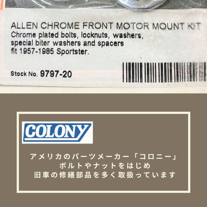 9797-20 Colony コロニー フロント モーター マウントキット クロームメッキ ハーレーダビッドソン 1957-1985年 スポーツスター