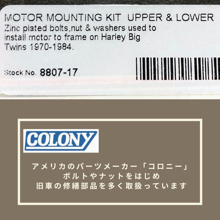 8807-17 Colony コロニー モーター マウントキット アッパー ロワー 上下 亜鉛メッキ ハーレーダビッドソン 1970-84年 ビッグツイン