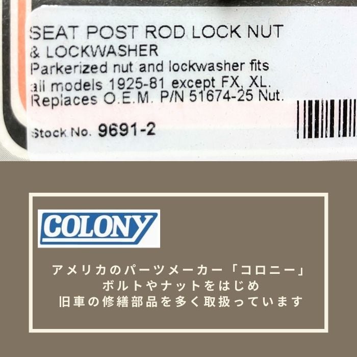 9691-2 colony コロニー シートポスト ロッド ロックナット ロックワッシャー ハーレーダビッドソン