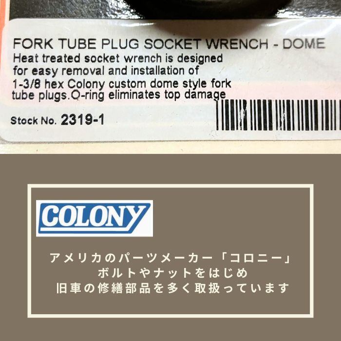 2319-1 Colony コロニー フォーク チューブ プラグ ソケット レンチ ハーレーダビッドソン 1-3/8 hex ドーム スタイル