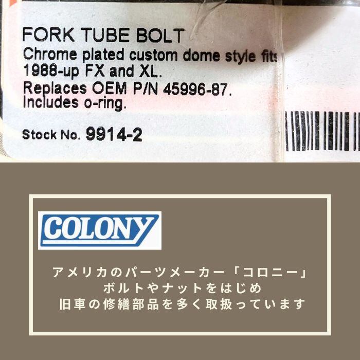 9914-2 Colony コロニー クロームメッキ フォーク チューブ ボルト ハーレーダビッドソン 1988年以降 XL FX