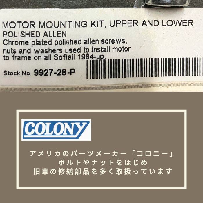 9927-28-P Colony コロニー モーター マウントキット アッパー ロワー 上下 クロームメッキ ポリッシュ アレン ハーレーダビッドソン 1984年以降 ソフテイル