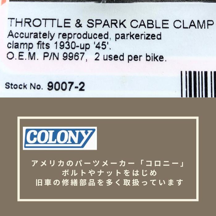9007-2 colony コロニー スロットル スパークケーブル クランプ ハーレーダビッドソン 1930年以降 45 モデル