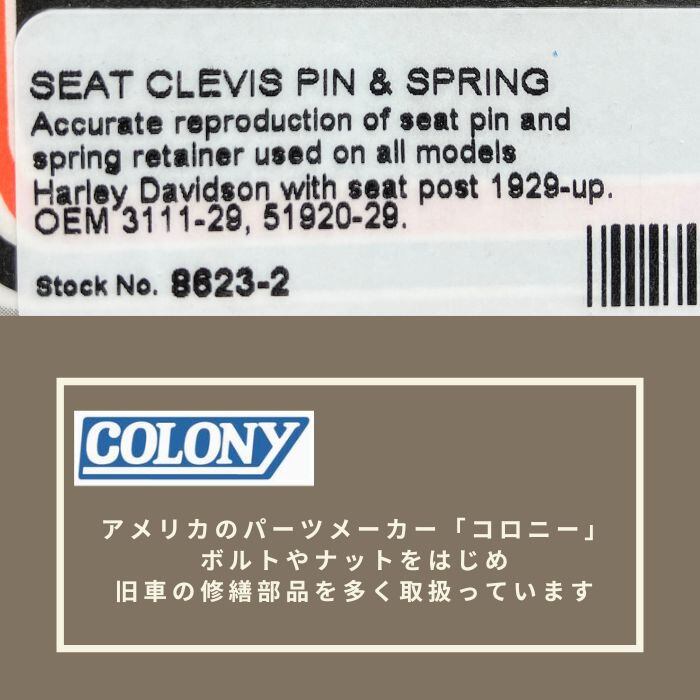 8623-2 colony コロニー シート クレバスピン スプリング ハーレーダビッドソン 1929年以降