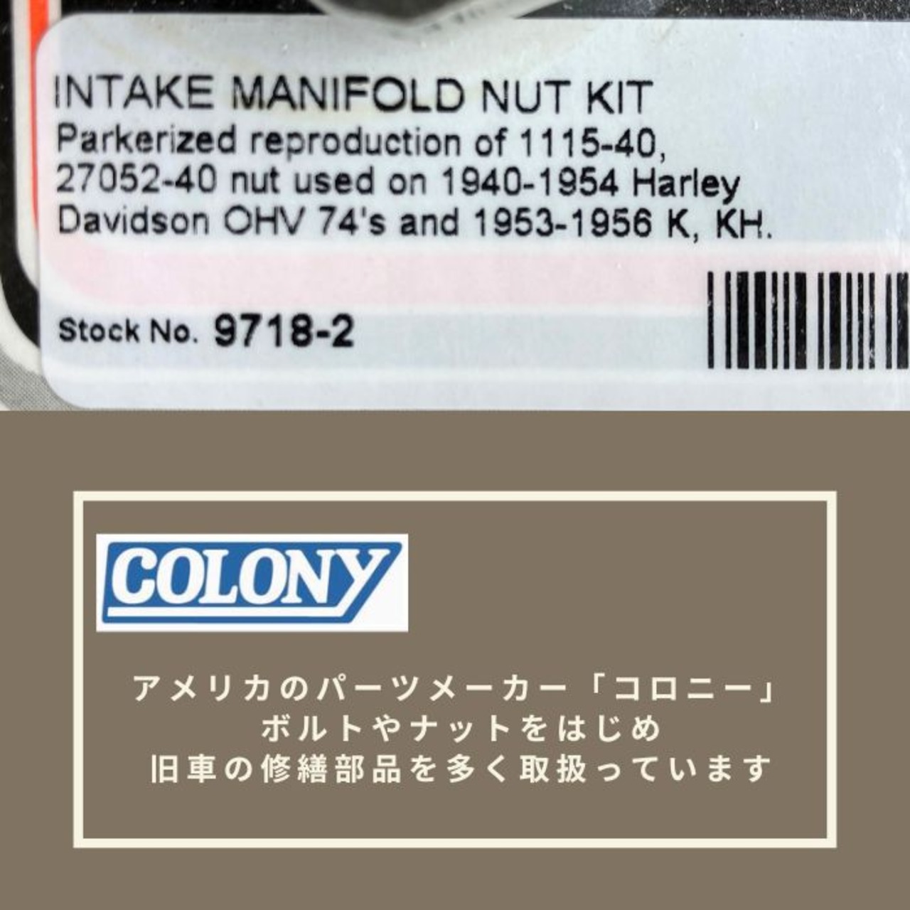9718-2 colony コロニー インテーク マニホールド ナット キット 1940-54年 OHV 74モデル 1953-56年 K KH